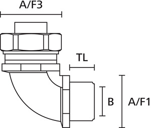 Mehrteilige 90° Verschraubung inkl. elastomerer Dichtung. Hervorragende Zugfestigkeit. 90°-Verschraubung, Außengewinde, Messing vernickelt.