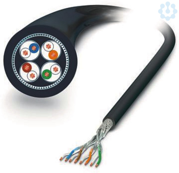 Meterware, Netzwerkkabel, Ethernet CAT7 (10 GBit/s), geschirmt, PE-X halogenfrei, schwarz, 8-adrig (4x2xAWG26/7. S/FTP), Farbe Einzelader: weiß-blau, weiß-orange, weiß-grün, weiß-braun, Kabellänge: 100 m, für Bahnanwendungen