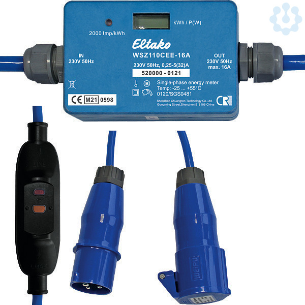 Mobiler Wechselstromzähler mit CEE-Stecker und CEE-Kupplung. Mit zusätzlichem Personenschutz-Zwischenschalter 30mA. Für Innen- und Außenbereich geeignet. Maximalstrom 16A. Stand-by-Verlust nur 0,4 Watt. Gehäuse-Abmessungen 110x70x35mm, Anschlussleitung 1,5m (incl. Stecker und Kupplung). Genauigkeitsklasse B (1%). Dieser mobile Wechselstromzähler misst die Wirkenergie anhand des zwischen dem Eingang und dem Ausgang fließenden Stromes. Der Eigenverbrauch von nur maximal 0,4 Watt Wirkleistung wird nicht gemessen und nicht angezeigt. Alle 30 Sekunden schaltet das Display für 5 Sekunden von der aufgelaufenen Wirkenergie in kWh auf den Momentanverbrauch in Watt um. Der Anlaufstrom ist 20mA. Das Display kann nur mit Stromversorgung abgelesen werden. Der Verbrauch ist jedoch nichtflüchtig gespeichert und wird nach einem Stromausfall sofort wieder angezeigt. Die Digitalanzeige hat 7 Stellen. Bis 99999,99 kWh werden zwei Nachkomma stellen angezeigt. Ab 100000,0 kWh nur noch eine. Der Leistungsbezug wird mit einer 2000-