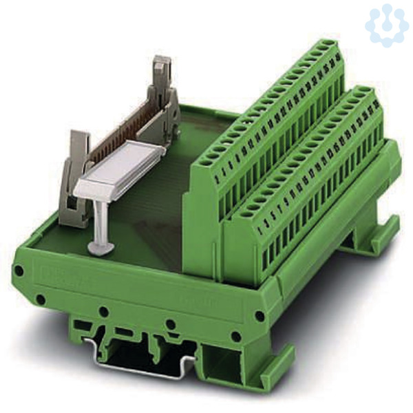 VARIOFACE-Modul, mit Schraubanschluss und Flachbandkabel-Steckverbinder, zur Montage auf NS 32 oder NS 35/7,5, mit Stiftleiste sowie kurzen und langen Verriegelungsklinken für Federleisten, Polzahl 20