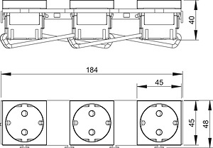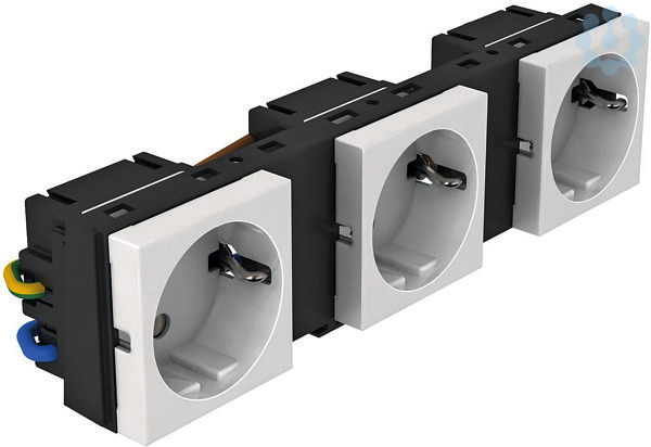 Konfektionierter Einbaurahmen mit drei 1fach-Steckdosen, Typ VDE, zum Einbau in einen Modulträger MT45V.