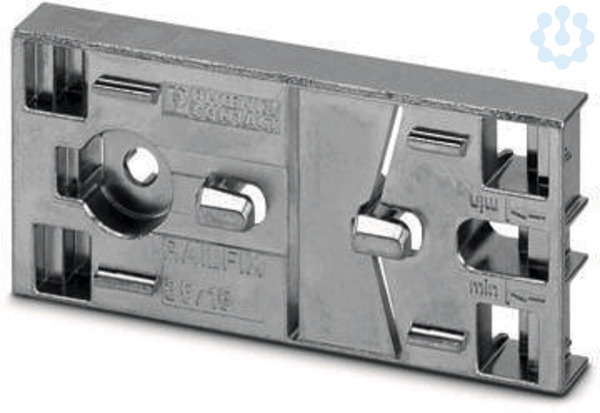 Montageadapter, zur Befestigung von Tragschienen auf Montageplatten oder Gehäusewänden von Schaltschränken, Material: Zinkdruckguss, Farbe: grau