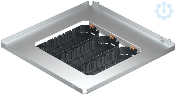 Montageset mit drei Universalträgern vom Typ UT4 zum hängenden Einbau in die Unterflur-Zug- und -Abzweigdose UZD350-3. Abdeckplatten sind separat zu bestellen.