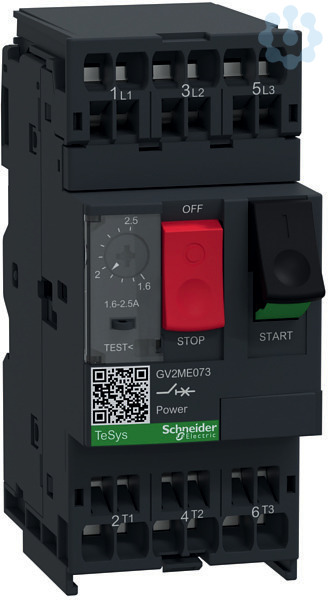 TeSys Motorschutzschalter GV2ME. Motorschutzschalter, 3P, Tasterbetätigung, Federzuganschluss. Bemessungsleistung 0,75 kW, Einstellbereich 1,6-2,5 A. Anschlussart Federzugklemmen.