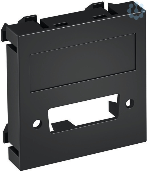 Multimediaträger für einen DVI Steckverbinder, Kabelauslass gerade, mit Beschriftungsfeld, ohne Steckverbinder. Trägerplatte mit Rastbefestigung, geeignet für den waagerechten und senkrechten Einbau in die Systemumgebung.
