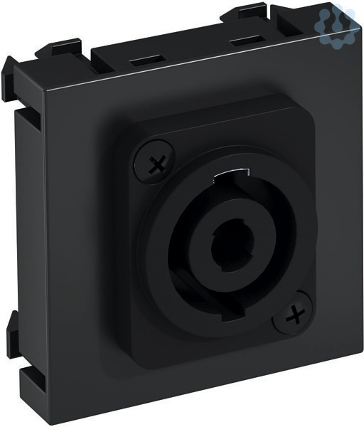 Multimediaträger mit einer Speakon-Anschlussbuchse, Kabelauslass gerade, ohne Beschriftungsfeld, Speakon-Buchse 4-polig mit Schraubanschluss. Trägerplatte mit Rastbefestigung, geeignet für den waagerechten und senkrechten Einbau in die Systemumgebung.