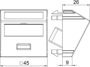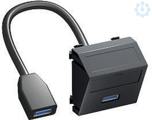 Multimediaträger mit einer USB 3.0 Anschlussbuchse, Kabelauslass schräg, mit Beschriftungsfeld, kurzes USB 3.0 Typ A Anschlusskabel in Ausführung Buchse-Buchse. Trägerplatte mit Rastbefestigung, geeignet für den waagerechten und senkrechten Einbau in die Systemumgebung.
