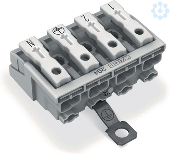 Leuchtenanschlussklemme. Drücker extern. mit PE-Schraubkontakt. 4-polig. Leuchtenseite: für eindrähtige Leiter. Inst.-Seite: für alle Leiterarten. max. 2,5 mm². Umgebungstemperatur max. 85 °C (T85). 2,50 mm². weiß