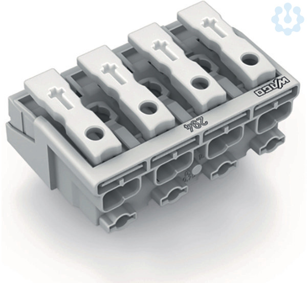 Leuchtenanschlussklemme. Drücker extern. ohne PE-Kontakt. 4-polig. Leuchtenseite: für eindrähtige Leiter. Inst.-Seite: für alle Leiterarten. max. 2,5 mm². Umgebungstemperatur max. 85 °C (T85). 2,50 mm². weiß