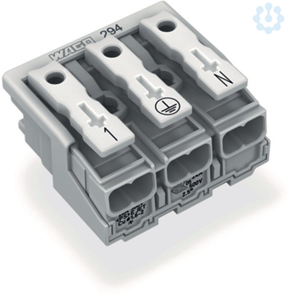 Leuchtenanschlussklemme. Drücker extern. ohne PE-Kontakt. 3-polig. Leuchtenseite: für eindrähtige Leiter. Inst.-Seite: für alle Leiterarten. max. 2,5 mm². Umgebungstemperatur max. 85 °C (T85). 2,50 mm². weiß