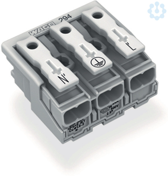 Leuchtenanschlussklemme. Drücker extern. ohne PE-Kontakt. 3-polig. Leuchtenseite: für eindrähtige Leiter. Inst.-Seite: für alle Leiterarten. max. 2,5 mm². Umgebungstemperatur max. 85 °C (T85). 2,50 mm². weiß