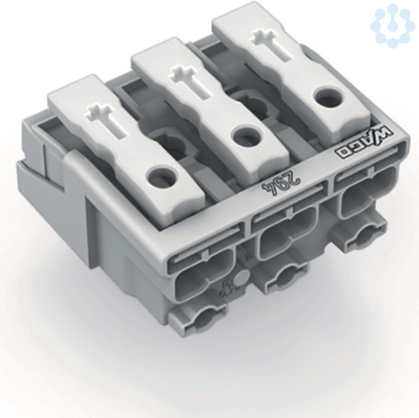 Leuchtenanschlussklemme. Drücker extern. ohne PE-Kontakt. 3-polig. Leuchtenseite: für eindrähtige Leiter. Inst.-Seite: für alle Leiterarten. max. 2,5 mm². Umgebungstemperatur max. 85 °C (T85). 2,50 mm². weiß
