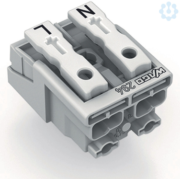 Leuchtenanschlussklemme. Drücker extern. ohne PE-Kontakt. 2-polig. Leuchtenseite: für eindrähtige Leiter. Inst.-Seite: für alle Leiterarten. max. 2,5 mm². Umgebungstemperatur max. 85 °C (T85). 2,50 mm². weiß