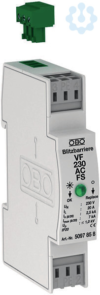 Überspannungsschutz / Netzfeinschutz Typ 3 nach EN 61643-11 mit Fernsignalisierung - Mit Fernsignalisierung potentialfreiem Wechslerkontakt, zur Funktionsüberwachung - Geeignet für AC Wechselspannungs-Systeme - Mit optischer Funktionsanzeige - Mit montagefreundlichen, schraublosen Anschlussklemmen - Im platzsparenden 17,5 mm Rastermaß - Y-Schaltung Anwendung: Universeller Einsatz auf 35 mm-Hutprofilschiene in handelsüblichen Verteilergehäuse.