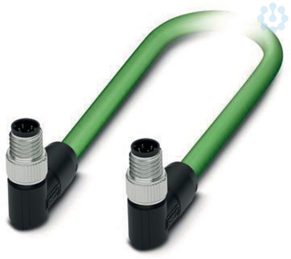 Netzwerkkabel, PROFINET CAT5 (100 MBit/s), EtherCAT® CAT5 (100 MBit/s), 4-polig, PUR/FRNC halogenfrei, grün RAL 6018, geschirmt (Advanced Shielding Technology), Stecker gewinkelt M8 / IP67, Kodierung: D, auf Stecker gewinkelt M8 / IP67, Kodierung: D, Kabellänge: 1 m