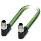 Netzwerkkabel, PROFINET CAT5 (100 MBit/s), EtherCAT® CAT5 (100 MBit/s), 4-polig, PUR/FRNC halogenfrei, grün RAL 6018, geschirmt (Advanced Shielding Technology), Stecker gewinkelt M8 / IP67, Kodierung: D, auf Stecker gewinkelt M8 / IP67, Kodierung: D, Kabellänge: 2 m