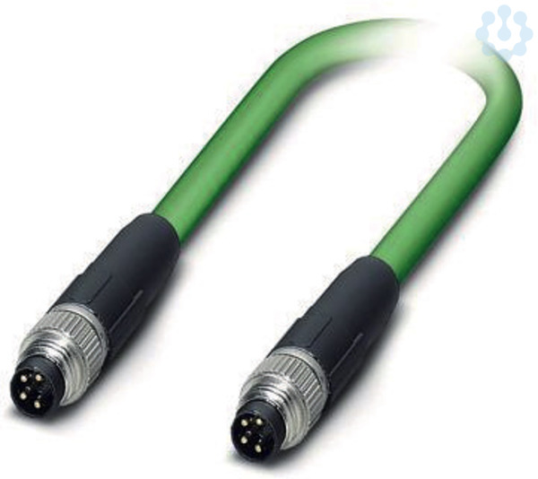 Netzwerkkabel, Ethernet (100 MBit/s), PROFINET (100 MBit/s), EtherCAT® (100 MBit/s), 4-polig, PVC/PVC, grün RAL 6018, Stecker gerade M8 / IP67, Kodierung: A, auf Stecker gerade M8 / IP67, Kodierung: A, Kabellänge: 0,5 m