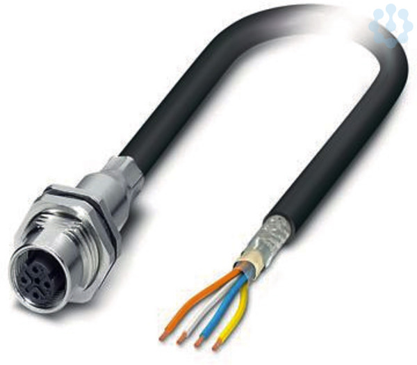 Konfektioniertes PROFINET-Kabel, CAT5e, geschirmt, Sternvierer, AWG 22 (7-drähtig), schwarz, M12-Einbaubuchse, Hinterwand-/Schraubmontage mit M16-Gewinde auf freies Leitungsende, Länge 2 m