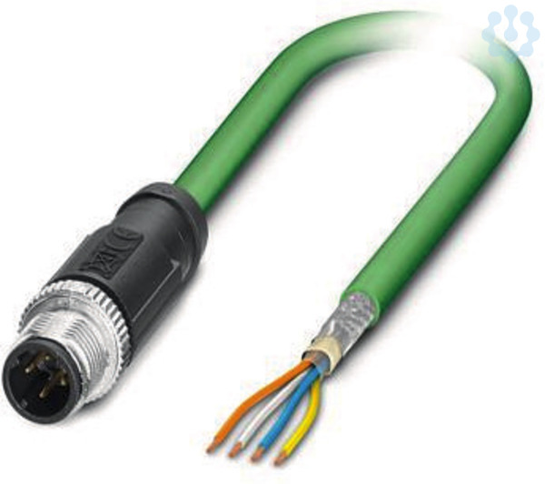 Netzwerkkabel, PROFINET CAT5 (100 MBit/s), EtherCAT® CAT5 (100 MBit/s), 4-polig, PVC/PVC, grün RAL 6018, geschirmt, Stecker gerade M12 SPEEDCON / IP67, Kodierung: D, auf freies Leitungsende, Kabellänge: 2 m