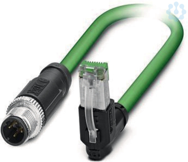 Netzwerkkabel, PROFINET CAT5 (100 MBit/s), EtherCAT® CAT5 (100 MBit/s), 4-polig, PVC/PVC, grün RAL 6018, geschirmt, Stecker gerade M12 SPEEDCON / IP67, Kodierung: D, auf Stecker gewinkelt RJ45 / IP20, Kabellänge: 1 m