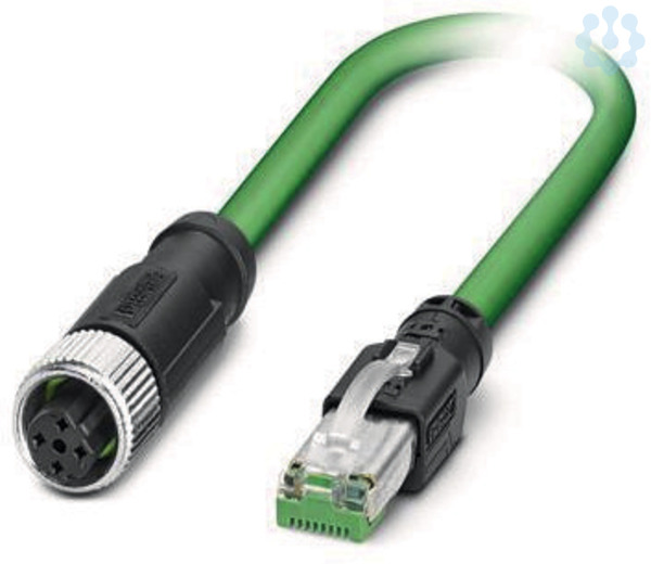 Netzwerkkabel, PROFINET CAT5 (100 MBit/s), EtherCAT® CAT5 (100 MBit/s), 4-polig, PVC/PVC, grün RAL 6018, geschirmt, Stecker gerade RJ45 / IP20, auf Buchse gerade M12 SPEEDCON / IP67, Kodierung: D, Kabellänge: 1 m