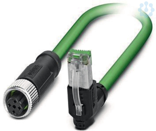 Netzwerkkabel, PROFINET CAT5 (100 MBit/s), EtherCAT® CAT5 (100 MBit/s), 4-polig, PVC/PVC, grün RAL 6018, geschirmt, Stecker gewinkelt RJ45 / IP20, auf Buchse gerade M12 SPEEDCON / IP67, Kodierung: D, Kabellänge: 2 m