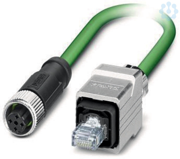 Netzwerkkabel, PROFINET CAT5 (100 MBit/s), EtherCAT® CAT5 (100 MBit/s), 4-polig, PVC/PVC, grün RAL 6018, geschirmt, Stecker gerade RJ45 Push-Pull / IP67, auf Buchse gerade M12 SPEEDCON / IP67, Kodierung: D, Kabellänge: 1 m