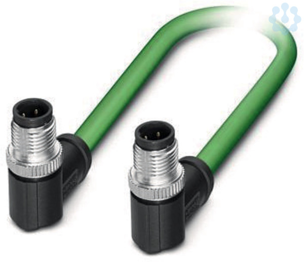 Netzwerkkabel, PROFINET CAT5 (100 MBit/s), 4-polig, PUR halogenfrei, grün RAL 6018, geschirmt, Stecker gewinkelt M12 SPEEDCON / IP67, Kodierung: D, auf Stecker gewinkelt M12 SPEEDCON / IP67, Kodierung: D, Kabellänge: 2 m