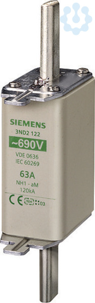 NH-Sicherungseinsatz, NH1, In: 125 A, aM, Un AC: 690 V, Stirnkennmelder, spannungsführende Grifflaschen NH-Sicherungssystem 3NA, 3ND für den selektiven Leitungs- und Anlagenschutz. Das NH-Sicherungssystem von Siemens als wichtiger Bestandteil der SENTRON Schutzkomponenten für die Elektroinstallation bietet effektiven Personen-, Geräte- und Anlagenschutz durch sicheres Abschalten im Überlast- und Kurzschlussfall. Im Vergleich zu Leitungsschutzschaltern können höhere Kurzschlussströme bei gleichzeitig besserer Strombegrenzung realisiert werden. Das NH-Sicherungssystem zeichnet sich vor allem aus durch: 1. Kombimelder signalisieren das Abschalten der Sicherung durch einen deutlichen Farbwechsel von rot nach weiß. 2. Mehr Sicherheit beim Wechseln durch isolierte Grifflaschen. 3. Hohe Selektivität bei niedrigen Kosten. 4. Langfristigen und sicheren Betrieb aufgrund versilberter Kontaktmesser. 5. Sicherungseinsätze von 2 A bis 1250 A und in den Baugrößen 000, 00, 0, 1, 2, 3, 4 und 4a verfügbar.