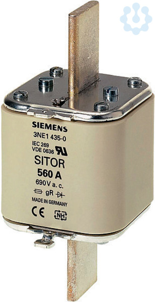SITOR-Sicherungseinsatz, mit Messerkontakten, NH3, In: 800 A, gS, Un AC: 690 V, Un DC: 440 V, Stirnkennmelder Halbleiterschutzsicherungen SITOR 3NE, 3NC schützen Leistungshalbleiter vor den Auswirkungen eines Kurzschlusses. Das SITOR-Sicherungssystem von Siemens als wichtiger Bestandteil der SENTRON Schutzkomponenten für die Elektroinstallation bietet effektiven Personen-, Geräte- und Anlagenschutz durch sicheres Abschalten im Überlast- und Kurzschlussfall. Der Einsatzbereich umfasst zusätzlich Frequenzumrichter mit Sicherungen im Eingangs- und im DC-Zwischenkreis sowie auch USV-Anlagen und Sanftstarter für Motoren. Die Siemens SITOR-Sicherungen zeichnen sich vor allem aus durch: 1. Superflinke Abschaltcharakteristik im Vergleich zu herkömmlichen NH-Sicherungen. 2. Auch Leistungshalbleiter werden bei Kurzschluss sicher geschützt. 3. Der Siemens Qualitätsstandard sichert eine sehr gute Kennlinientreue. 4. SITOR-Zylindersicherungen sind nach IEC und UL und größtenteils auch CCC zugelassen und damit weltweit ein