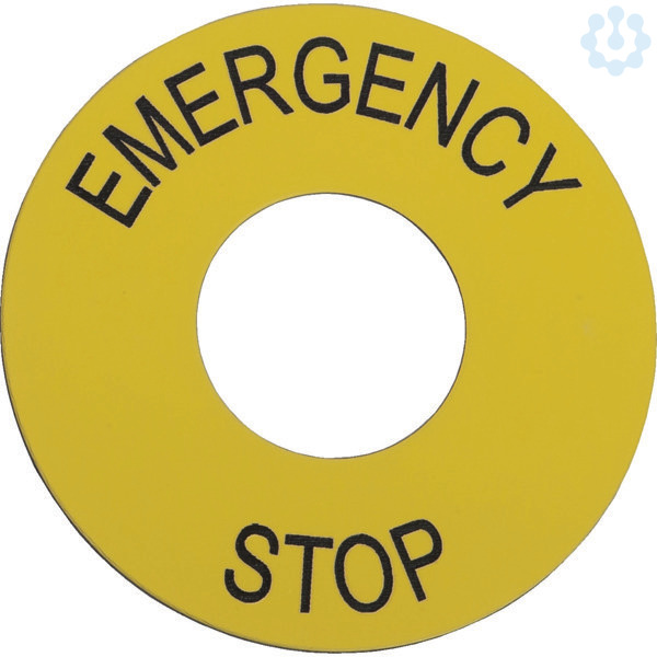 Bezeichnungsschilddurchmesser von 60 mm - EMERGENCY STOP. Es ist ein Zubehör der Baureihe Harmony XAC Hängetaster für 22-mm-Kunststoff-Signaleinheiten mit Durchmesser.