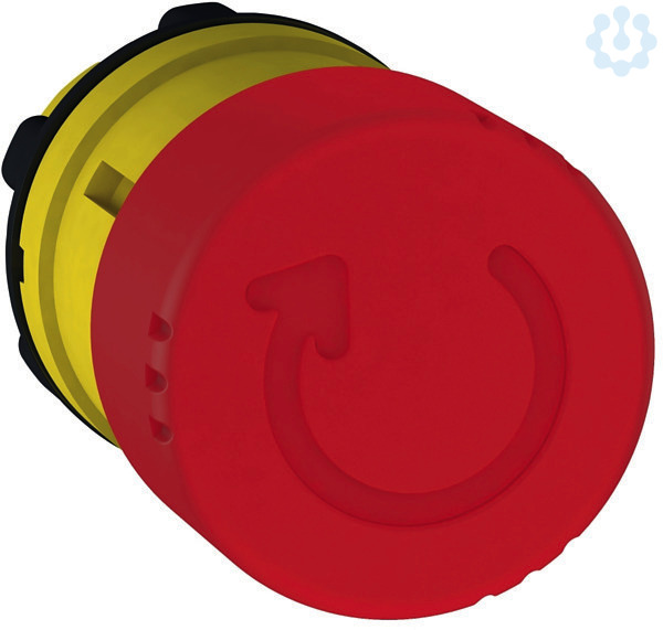 Kunststoffprogramm DM 22 mm Frontelement für modularen Aufbau. Pilzdrucktaster. Frontelement für Not-Halt/Not-Aus-Taster, Drehentriegelung. Frontelement für -Not-Halt/Not-Aus-Taster, rot, DM 40 mm, überlistungssicher (auch mit DM 30 mm und 60 mm erhältlich). Mit Rastung.
