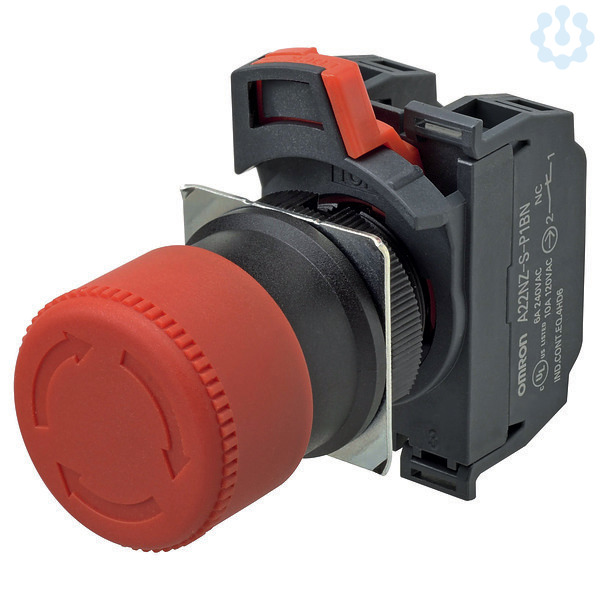 Notausschalter, Push-In, nicht beleuchtet, 30 mm Ø, Verriegelung durch Drucktaste/Zurücksetzen durch Drehtaste, NC