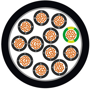 Min. zulässiger Biegeradius, stationärer Einsatz/fest verlegt