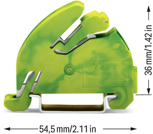 PE-Sammelschienenträger. mit Durchkontaktierung zur Tragschiene DIN 35. grün-gelb