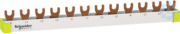 Phasenschiene Gabel Resi9 3-polig+N, 57TE, ablängbar, Nennstrom 63A, Betriebsspannung (Ue) 230/400V AC, Isolationsspannung 500V Farbe RAL 7035.