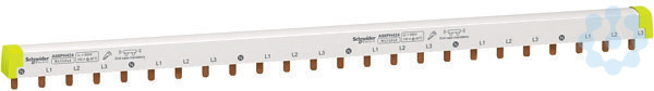 Phasenschiene Steg Acti 9. 4-polig, ablängbar, 24TE, Nennstrom 100A, Nennspannung 415V AC, Isolationsspannung (Ui) 500V. Farbton RAL 7016. Die Phasenschiene Steg erfüllt folgende Normen- IEC 60947-7-1 und IEC 61439-2.