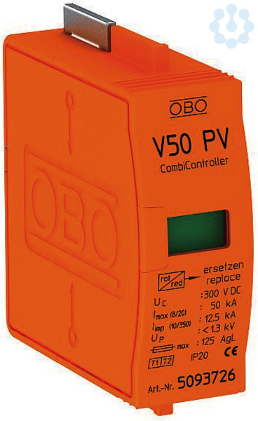 Oberteil: Kombiableiter aus Blitzstrom- und Überspannungsableiter Typ 1+2 (Klasse B+C) nach EN 61643-11 zum Blitzschutzpotentialausgleich nach VDE 0185-305 sowie Überspannungsschutz nach VDE 0100-443. Optische Funktionsanzeige Schutzpegel < 1 kV max. erforderliche Vorsicherung 160 A. Gekapselte, nicht ausblasende Varistorableiter. 5 Jahre Gewährleistung