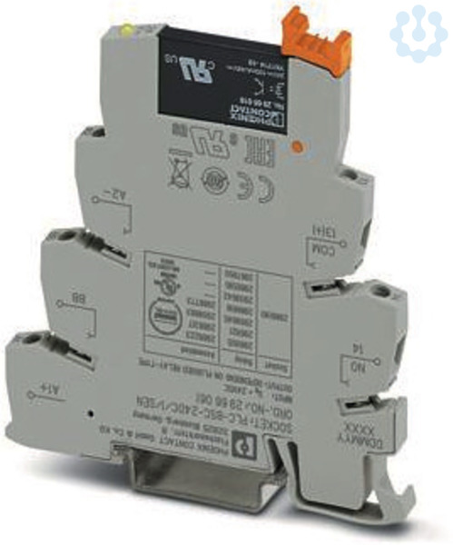 PLC-INTERFACE für Eingabefunktionen, bestehend aus Grundklemme PLC-BSC.../SEN mit Schraubanschluss und steckbarem Miniatur-Solid-State-Relais, zur Montage auf Tragschiene NS 35/7,5, 1 Schließer, Eingang: 24 V DC, Ausgang: 3-48 V DC/100 mA