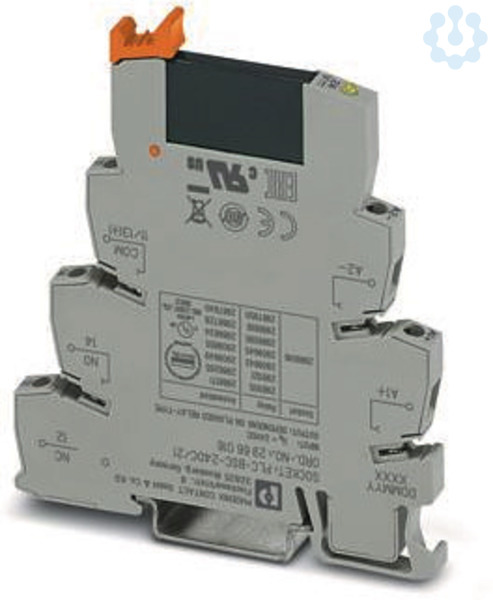 PLC-INTERFACE, bestehend aus Grundklemme PLC-BSC.../21 mit Schraubanschluss und steckbarem Miniatur-Solid-State-Relais, zur Montage auf Tragschiene NS 35/7,5, 1 Schließer, Eingang: 24 V DC, Ausgang: 3-48 V DC/100 mA