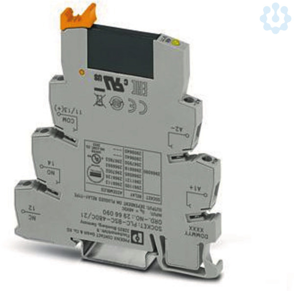PLC-INTERFACE, bestehend aus Grundklemme PLC-BSC.../21 mit Schraubanschluss und steckbarem Miniatur-Solid-State-Relais, zur Montage auf Tragschiene NS 35/7,5, 1 Schließer, Eingang: 48 V DC, Ausgang: 3-48 V DC/100 mA