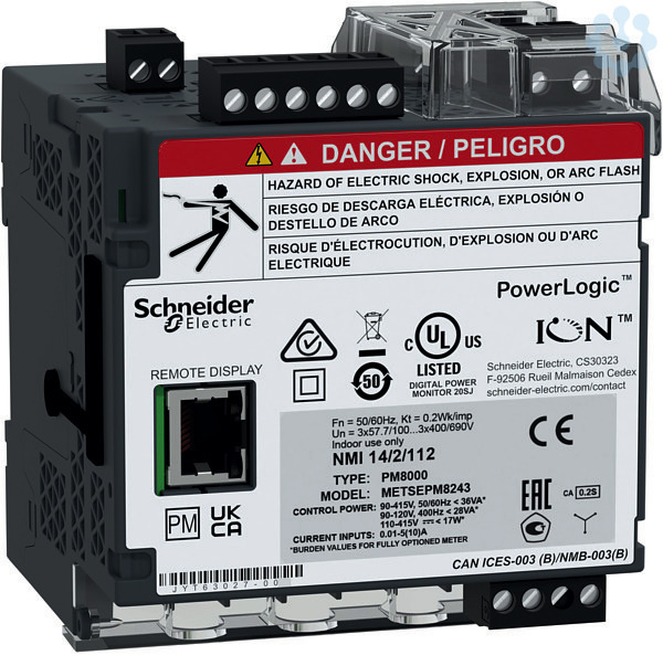 PowerLogic PM8000. PM8243 Messgerät, Zwischenmessung. Display ohne, Montage Hutschiene.