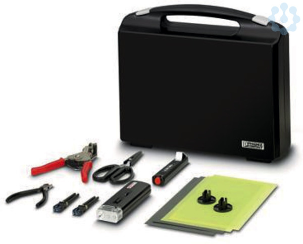 Polierwerkzeug-Set SC-RJ, für Polymerfaser, zur Feldkonfektionierung der Steckverbinder SC-RJ (IP20/IP67) mit Schnellanschlusstechnik, mit Abmantel-/ Abisolierwerkzeug, Seitenschneider, Aramidschere, Poliermaterialien, Mikroskop, 2x SC-RJ-Steckverbinder IP20