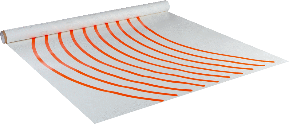 Codes, Positionierungs-Codes, Beschreibung: Lumineszierendes robustes PVC Klebeband, vorbereitet als 90° Boden im Radius 1000 mm, neon orange