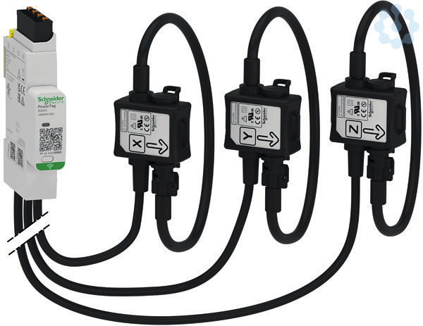 Der PowerTag Energy R1000 3P/3P+N ist ein Energiezähler mit drahtloser Kommunikation. Mit seinen Rogowski-Stromwandlern ist er für 3P- und 3P+N-Messstellen mit einem Nennstrom von bis zu 1000A geeignet. Er muss mit einem Ethernet-Gateway (Modbus TCP) für drahtlose Energiezähler verbunden werden, um Messung, Schaltungsüberwachung und -diagnose der zur Last zu ermöglichen. Er ist speziell für Anwendungen in den Bereichen Energiemanagement, Lastüberwachung und Verfügbarkeit ausgelegt. Er umfasst genaue Echtzeitmessungen von Wirk-, Blind- und Scheinenergie, Wirk-, Blind- und Scheinleistung, Strom, Spannung und Leistungsfaktor. Im Falle eines Stromausfalls sendet er einen Spannungsverlustalarm und den Wert des Stroms pro Phase, bevor er abgeschaltet wird. PowerTag Energy R1000 entspricht der Norm IEC 61557-12. Er ist ein PMD-II/DD/K70/1. Die Genauigkeitsklasse ist Klasse 1. Der maximal Strom Imax beträgt 1000A. Der Ib-Basisstrom beträgt 150A. Der Sättigungsstrom beträgt 2000A und der Ist-Startstrom 600mA. Die Un-B