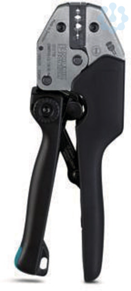 Presszange, kompakter Zangenkörper, Koaxial-Steckverbinder HDTV, BNC, TNC, 1,04 mm, 4,52 mm, 6,48 mm, 7,06 mm, vier gekennzeichnete Gesenkstationen, Zwangssperre entriegelbar, seitliche Einführung