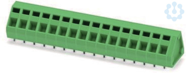 Leiterplattenklemme, Nennstrom: 16 A, Bemessungsspannung (III/2): 400 V, Nennquerschnitt: 1,5 mm², Anzahl der Potenziale: 16, Anzahl der Reihen: 1, Polzahl pro Reihe: 16, Artikelfamilie: ZFKDS(A) 1,5, Rastermaß: 5,08 mm, Anschlussart: Zugfederanschluss, Montage: Wellenlöten, Anschlussrichtung Leiter/Platine: 45 °, Farbe: grün, Pin-Layout: Lineares Doppel-Pinning, Pinlänge [P]: 3,5 mm, Verpackungsart: verpackt im Karton