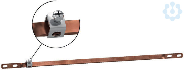 PrismaSeT P. Linergy TB Erdungsschiene aus Kupfer mit einer Schienengröße von 12 x 3 mm, mit 1 Einspeiseklemme für Kabel 16 bis 35 mm² mit einer Länge von 450 mm.