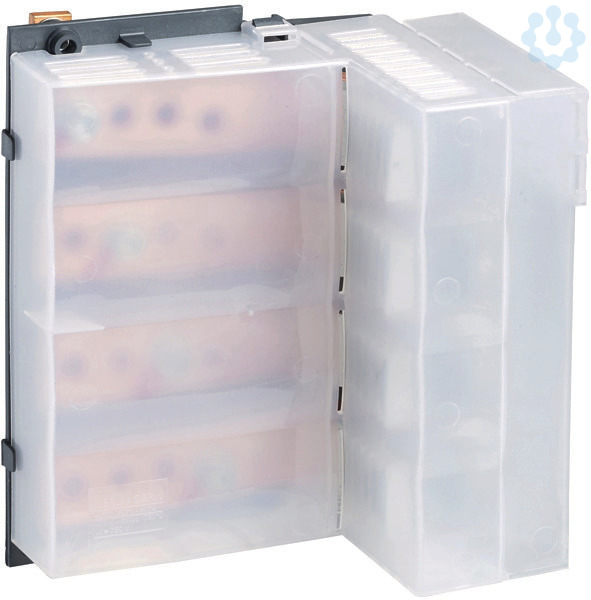PrismaSeT P. Verbindungsblock für einen 4-poligen ComPacT NSX 630 A oder einen ComPacT INS oder INV 500 bis 630 A in horizontaler Einbaulage in Festeinbautechnik, mit einer vertikalen Linergy BW Sammelschiene.