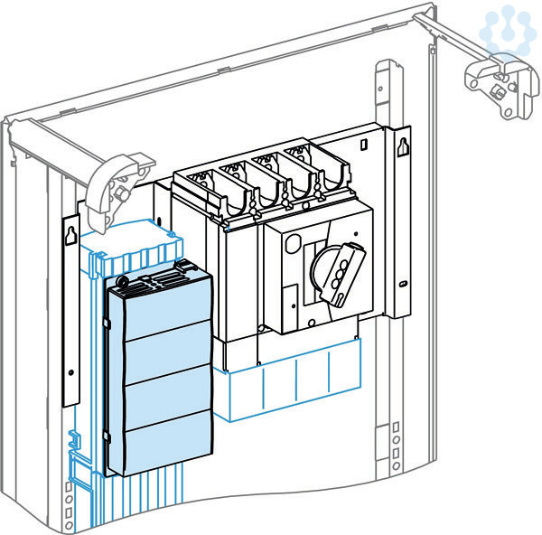 PrismaSeT P. Verbindungsblock für einen 4-poligen ComPacT NSX oder NSX Vigi 400 bis 630 A oder INS oder INV 320 bis 630 A in horizontaler Einbaulage in Festeinbautechnik, Stecktechnik oder Einschubtechnik. mit einer vertikalen Linergy BW Sammelschiene.